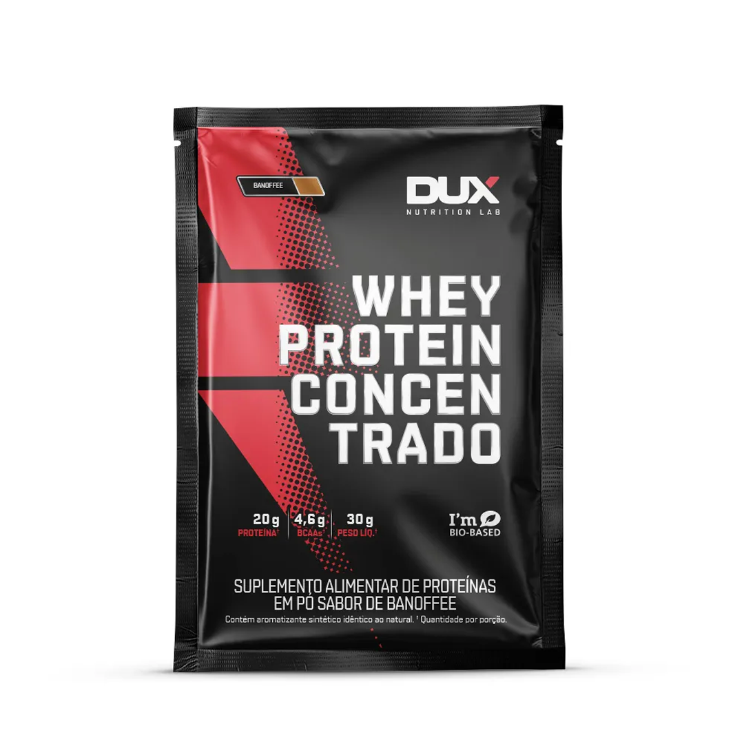 O Whey Protein Concentrado da DUX Nutrition está disponível em embalagens práticas de sachê de 28g, oferecendo conveniência para consumo em qualquer lugar. Este suplemento é formulado para auxiliar na construção e manutenção da massa muscular, fornecendo proteínas de alta qualidade extraídas do soro do leite.