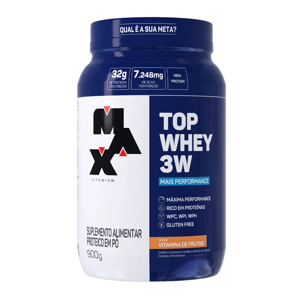 O Top 3W 900g da Max Titanium é um suplemento proteico formulado com a combinação de três fontes de proteína de alto valor biológico: Whey Protein Concentrado (WPC), Whey Protein Isolado (WPI) e Whey Protein Hidrolisado (WPH). Essa mistura proporciona absorção gradativa dos nutrientes, auxiliando no ganho de massa muscular, recuperação e desempenho esportivo.